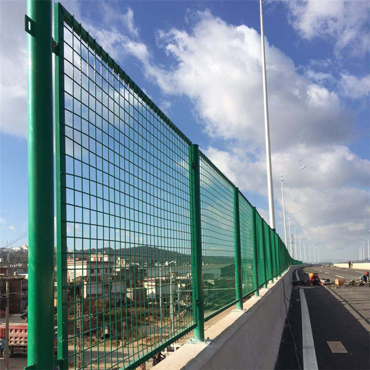 橋梁護(hù)欄網(wǎng)用于橋梁兩側(cè)防止物落。此產(chǎn)品結(jié)構(gòu)結(jié)實(shí),美觀,耐用。用卡子卡網(wǎng)片,底盤用膨脹螺栓與地面鏈接。按裝簡(jiǎn)單,省時(shí),此產(chǎn)品可耐用15年左右。橋梁防拋網(wǎng)采用鋼板網(wǎng)或鋼筋焊接網(wǎng)、異型管、邊耳、圓管焊接成的。采用連接附件與熱鍍管支柱固定,并且比較經(jīng)濟(jì)實(shí)惠,且外形美觀,風(fēng)阻少,經(jīng)過鍍鋅涂塑雙涂層能延長使用壽命,減少維護(hù)費(fèi)用,目安裝便利,不易損壞,接觸面少,不易沾塵能長久保持整潔 防異物墜落。