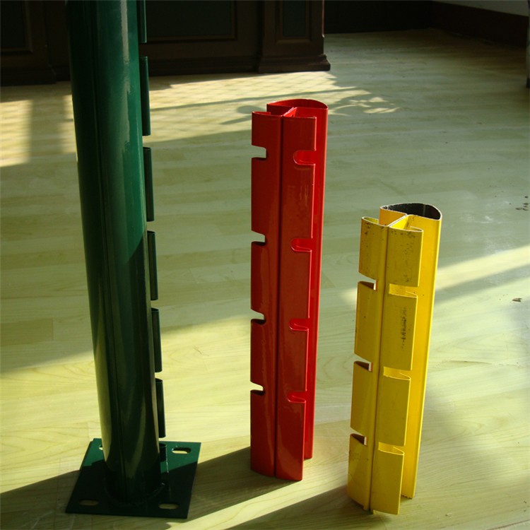 桃形立柱規格:7*10*1.0厚*2150米高。板材成型通過冷彎和冷軋。其結構簡單,形狀為規則的半橢圓型,安裝方便。柱體上的掛鉤由缺口分為幾部分并沿柱體縱向均勻地分布于柱體兩側。掛鉤板內彎成拱型與橢圓型柱體的直邊相切,有效的防止了被撬開,保證了護欄的安全性。