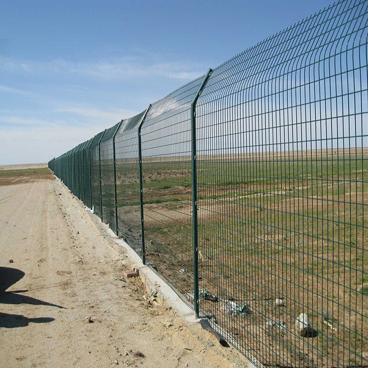 水資源保護區圍欄網是采用優質低碳鋼絲焊接后經PVC浸塑處理,焊接網圍欄網絲徑線徑塑后常見4.0mm,網孔(絲到絲)75*150mm,立柱多為48*2.0mm,網外形尺寸1800*3000mm,表面處理為草綠色,飲用水保護區隔離柵頂部一般都有30公分30度角,必要時可掛鐵蒺藜刺網加固 防護性更好。