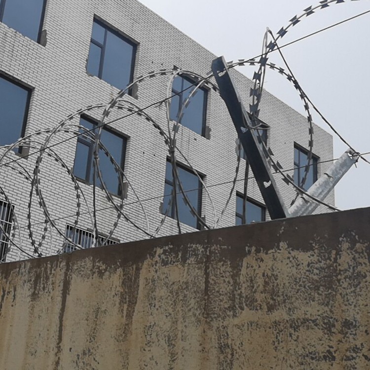 其次在刀片刺繩安裝前一定要確認刀片刺繩安裝基礎的牢固性,鐵路上的刀片刺繩有的安裝在水泥立柱上,有的安裝在金屬護欄網頂部,不管是水泥立柱還是金屬護欄網我們一定要確保他們安裝牢固,否則容易對刀片刺繩安裝人員造成人身傷害。