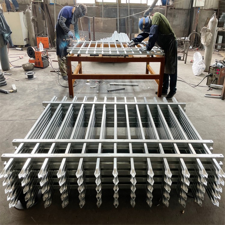 5.斜撐與圍界柱焊接連接,圍界間的橫豎桿(龍骨)采用螺栓連接擰緊螺母。
