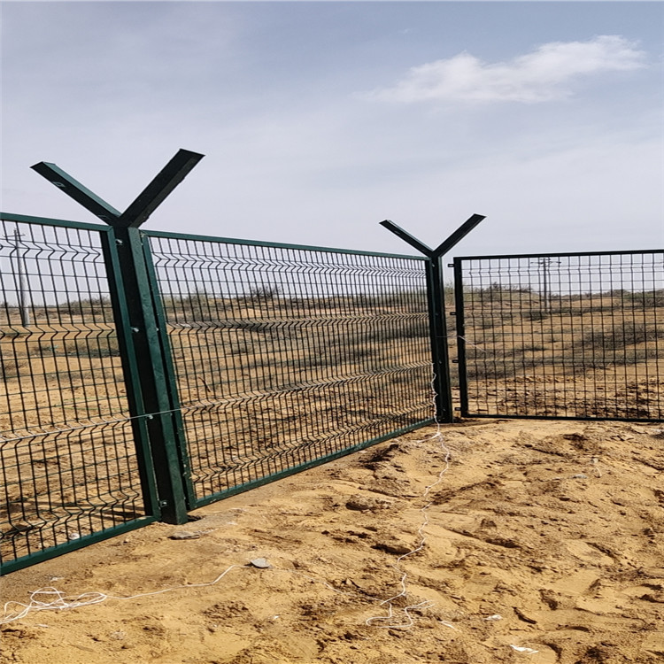 軍事基地防沖撞柵欄又稱作“Y型安全防御護網”鋼網墻,和機場護欄網通用。是由V型支架立柱,型焊接片網,安全防盜連接件和熱鍍鋅刺籠組成強度和安全防御性級別很高,近年來,被應用在,機場,軍事基地等高安全場所。如果在護欄網頂部加裝刺絲、刺繩后又的增強了安全防護性能。采用電鍍、熱鍍、噴塑、浸塑等防腐形式,具有的防老化、防曬、防潮濕等特點。其產品造型美觀、花色多樣,既起到圍欄作用,又起到美化作用。由于具有安全性高、防攀爬能力好,網片連接方式采用特制SBS緊扣件,有效防止人為的破壞性拆卸,橫向四道折彎筋,使網面強度增加。