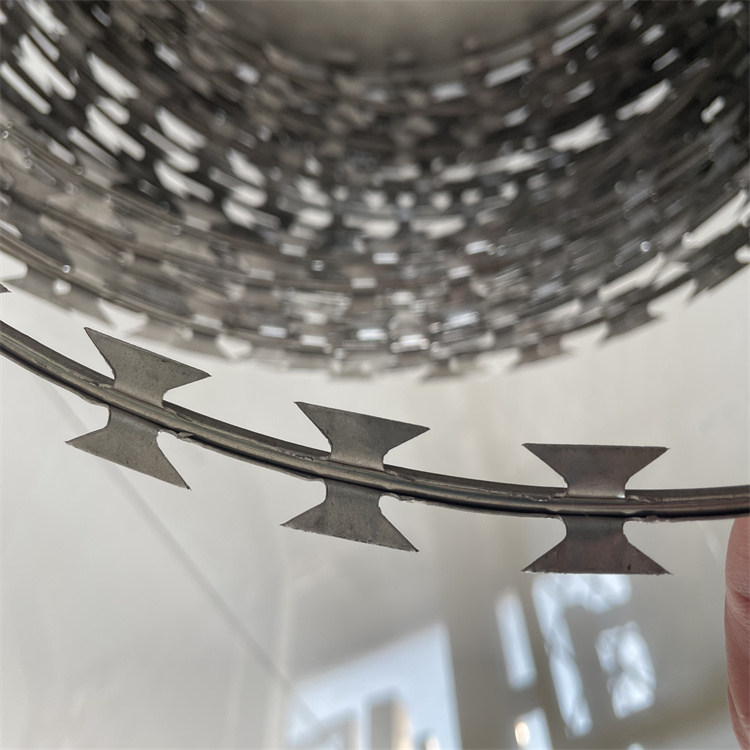 標簽: 304不銹鋼刺網圈設定間距、 鐵路刺絲滾籠、 刀片刺繩、 蛇腹型刀刺網、