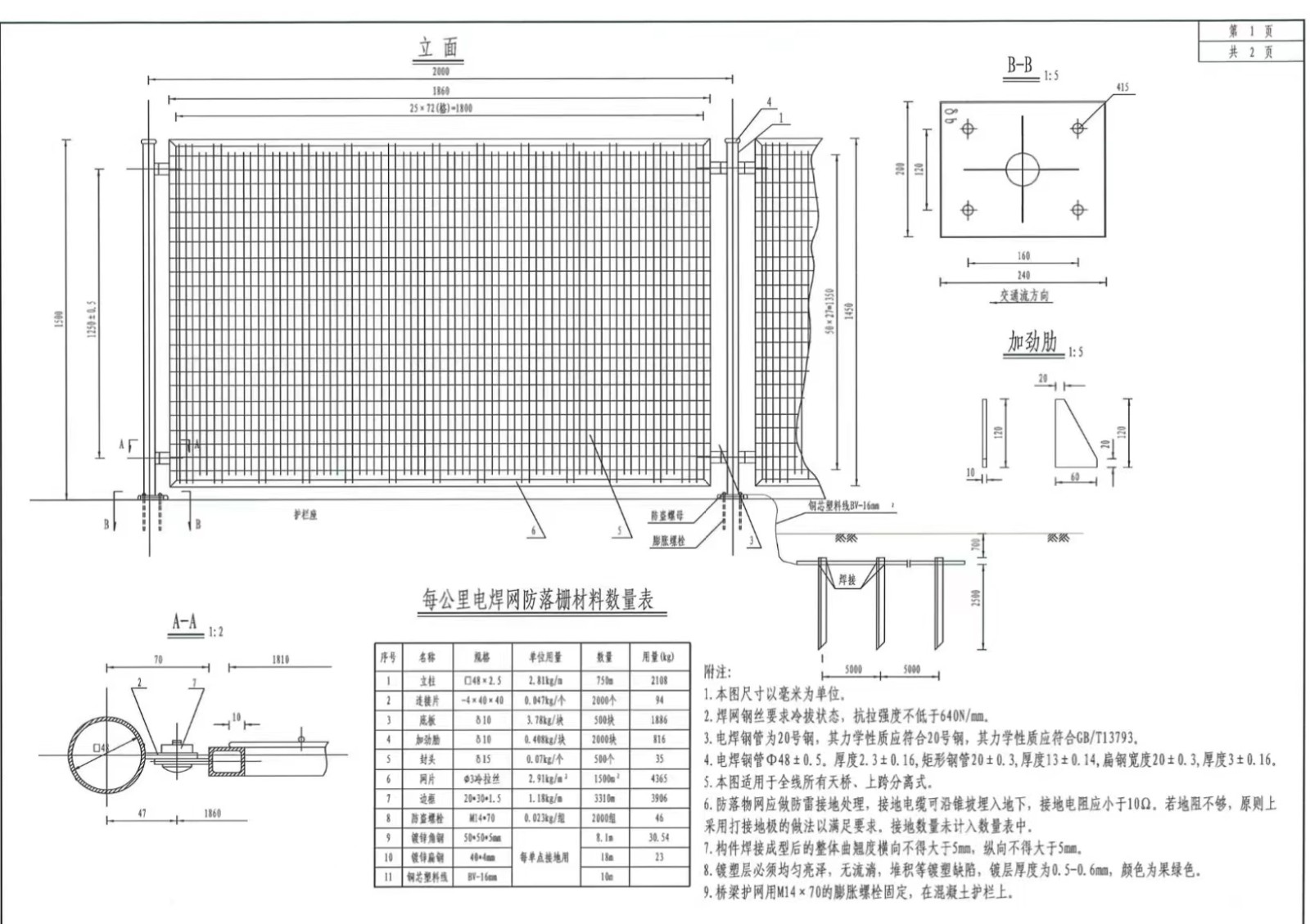 高速公路隔離柵圖紙設計
