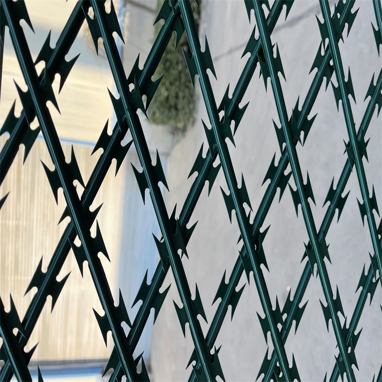 監(jiān)獄菱形網(wǎng)孔隔離網(wǎng)是由刀片刺繩焊接而成,網(wǎng)孔呈現(xiàn)菱形的刀片刺網(wǎng),一般網(wǎng)孔對(duì)角線(xiàn)大小為75*150mm、50*100mm。刀片刺網(wǎng)是一種名為刀刺鋼網(wǎng)墻、蛇腹式刀刺鋼網(wǎng)墻、刀片刺繩護(hù)欄網(wǎng)、刀刺防護(hù)網(wǎng)、尖刺圍網(wǎng)的監(jiān)獄隔離網(wǎng)、獄墻護(hù)欄網(wǎng)、監(jiān)獄防爬網(wǎng)、監(jiān)獄網(wǎng)片、監(jiān)獄圍墻等。它由刀片刺網(wǎng)和圍欄網(wǎng)組合使用,有熱鍍鋅刀刺網(wǎng)和不銹鋼刀刺網(wǎng)兩種,其中不銹鋼刀刺網(wǎng)比熱鍍鋅刀刺網(wǎng)價(jià)格較高,但防腐蝕效果、光亮度和材質(zhì)都要比熱鍍鋅刀刺網(wǎng)好。