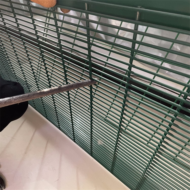 358密紋護欄網圍欄網孔:12.5x75mm或者12.5x100mm,或者可以根據實際需要進行調整,絲粗:3.0-6.0mm,網高:1.8m,2.0m,2.4m,2.7m,3.0m,4.0m,5.2m,網寬:2m,2.5m,3m,358,密紋網網孔密實,手指無法放入網孔內,防攀爬能力強,加強網片,用常規五金剪刀等工具不易切割,起到了很好的保護作用。