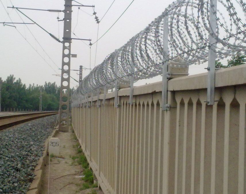 關于刺絲滾籠在鐵路上的安裝是有一定的安裝標準的,每米要求覆蓋1.5kg的刺絲滾籠,而且需要有支架支撐。安裝時要求每1.5米安裝一個支架,相鄰支架不能為同一種支架,應當分別放置立柱支架和加密支架。關于支架也是有相關要求的我們下期繼續分享。