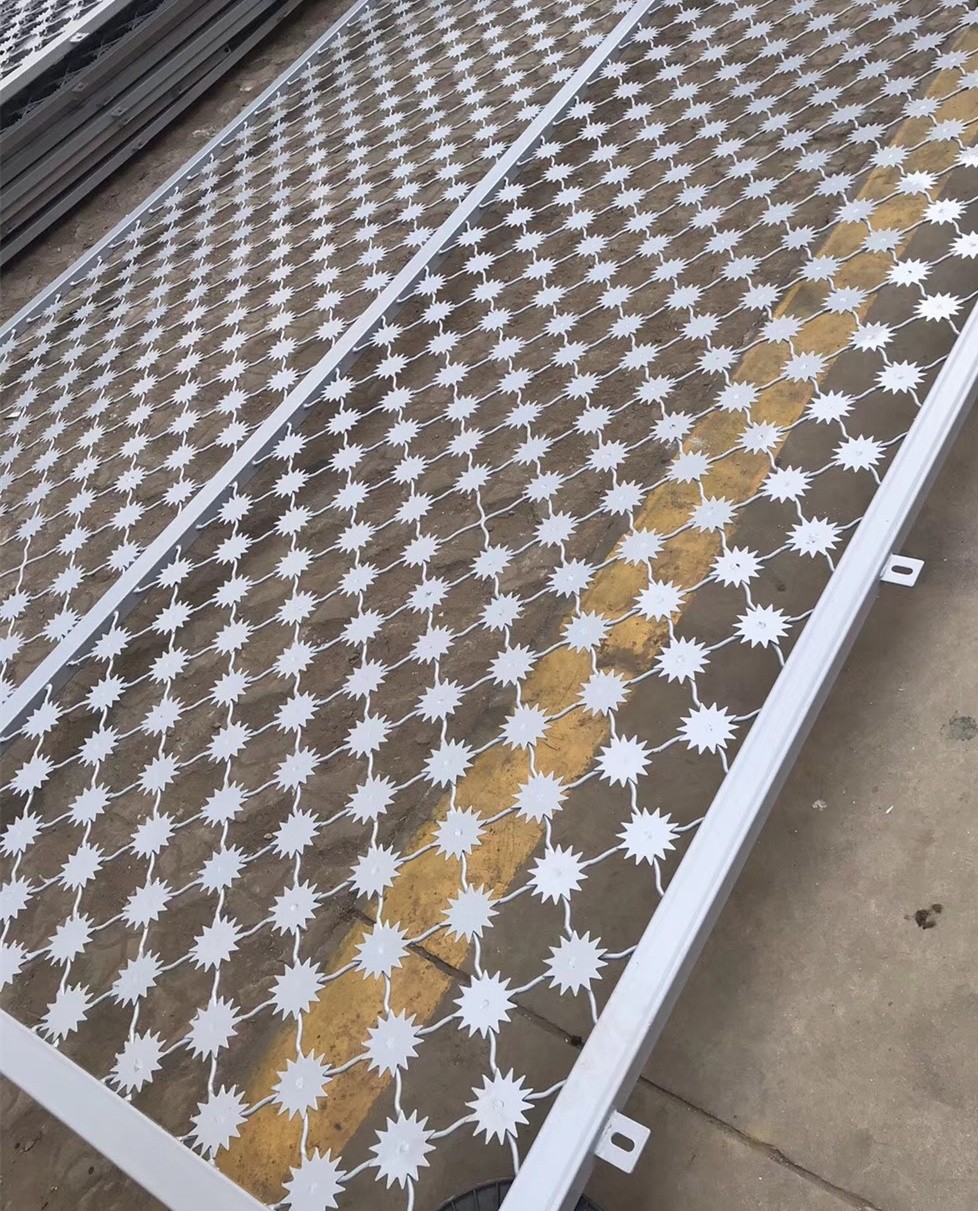 梅花刺片隔離網(wǎng),不僅美觀大方,而且防護(hù)性能超強(qiáng)!它采用獨(dú)特的梅花狀刺片設(shè)計(jì),防攀爬能力極強(qiáng),讓你的家庭、學(xué)校、工廠、監(jiān)獄等場所安全無憂。同時(shí),高品質(zhì)低碳鋼絲制作,抗攀爬、耐磨損,有效防護(hù)面積大,讓你無需擔(dān)心安全問題。