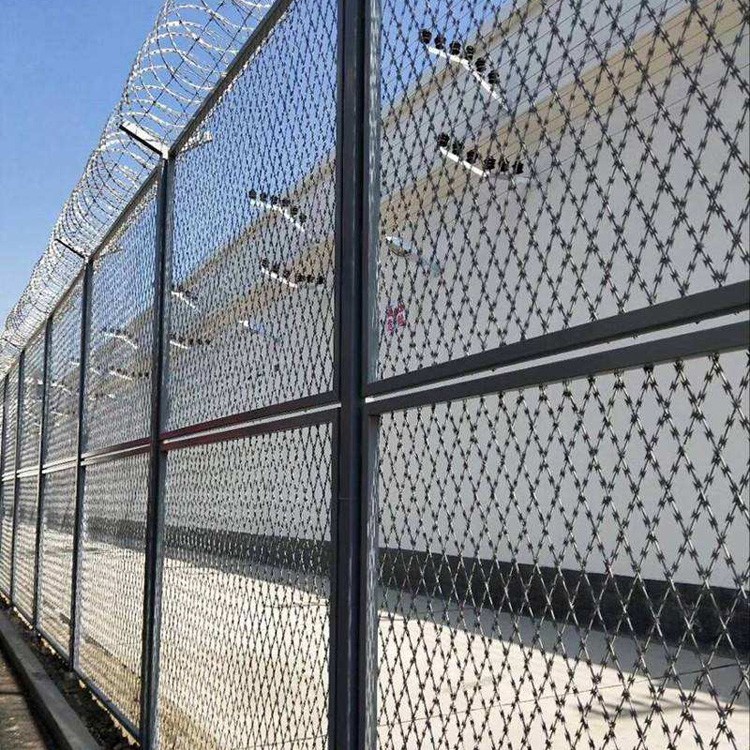 監獄刀片刺焊接網是一種防護、隔離能力極強的新型防護網產品。刀刺隔離網的網孔一般均為7.5*10cm、5*10cm、7.5*15cm、10*15cm等。鋒利的刀片焊接成網形成一道防攀爬具有嚇阻作用的安全屏障。