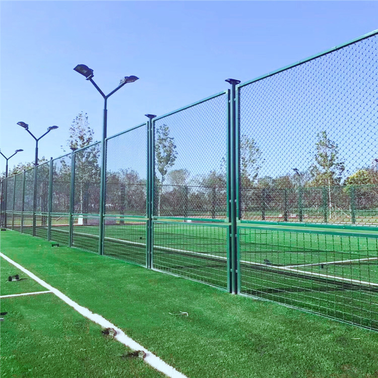 在籃球場(chǎng)、足球場(chǎng)等體育場(chǎng)所,可以使用勾花網(wǎng)護(hù)欄,網(wǎng)身為編織勾花網(wǎng),比普通焊接網(wǎng)網(wǎng)身受力更多,不會(huì)因?yàn)榍虻淖矒舳芯W(wǎng)片開(kāi)焊的的擔(dān)憂。