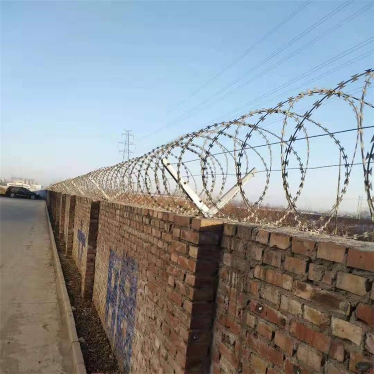 (4)、蛇腹形刺絲滾籠的下緣距離鋼筋混凝土防護柵欄上緣的垂直距離為0.05m。