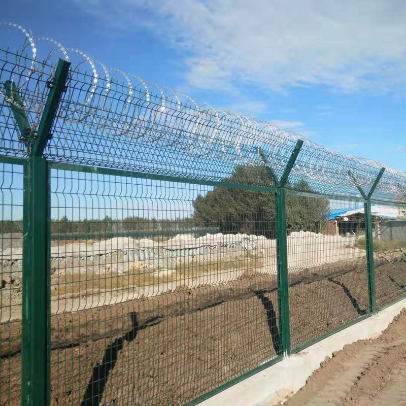 機(jī)場(chǎng)鋼鋼筋網(wǎng)圍界是一種新型防護(hù)網(wǎng),由銳利尖角鍍鋅鋼板或不銹鋼薄板做刀片,鋼絲做芯線組合而成的防護(hù)器材該產(chǎn)品具有嚇阻、防翻越等效果,材質(zhì)堅(jiān)硬,高強(qiáng)度,高張力,造型設(shè)計(jì)獨(dú)特,不宜觸摸,因而能達(dá)到極好的防護(hù)隔離效果。還具有施工簡(jiǎn)便,經(jīng)濟(jì)實(shí)用等優(yōu)點(diǎn)。