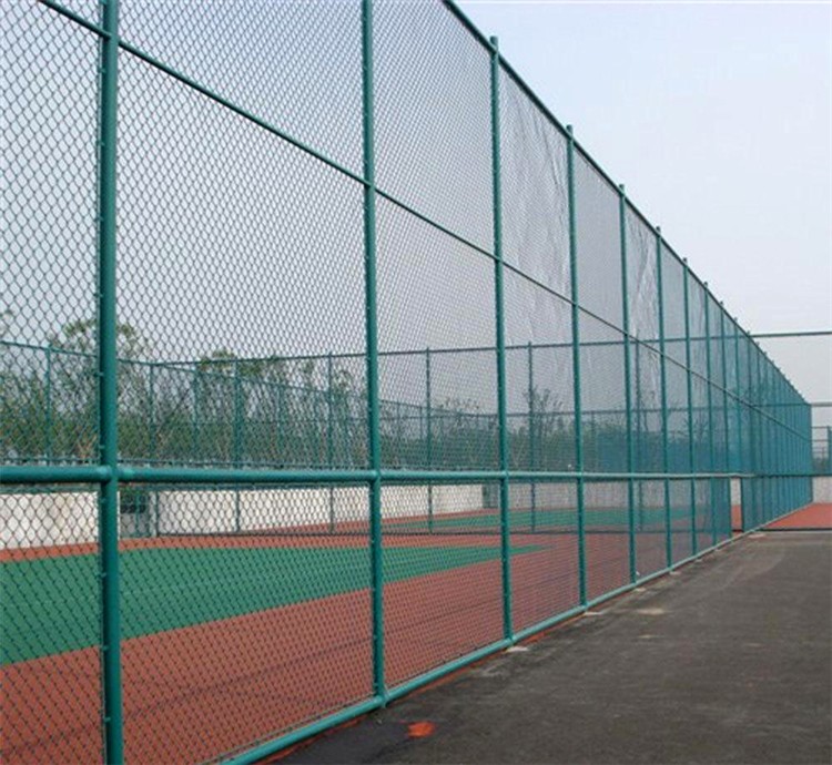 網高:4米寬3米,能工生產的網球場圍網表面全部用PVC塑處理,免人工維護保養,表面塵埃經雨水沖洗自然脫落,停止使用后可拆走后作綠化設施使用。其主要用于學校動場,籃球場、操場、網球場、體育場地圍欄與防護。