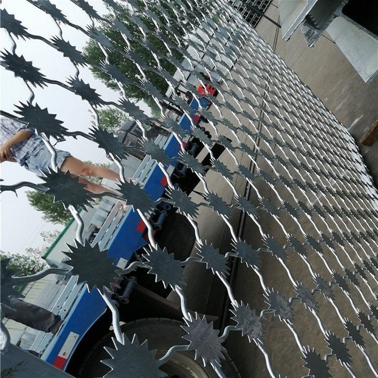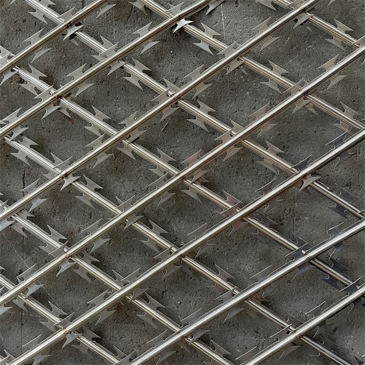 監獄看守所焊接刀片隔離網生產圖樣  監獄巡邏道鋼網墻簡稱“監獄鋼網墻”